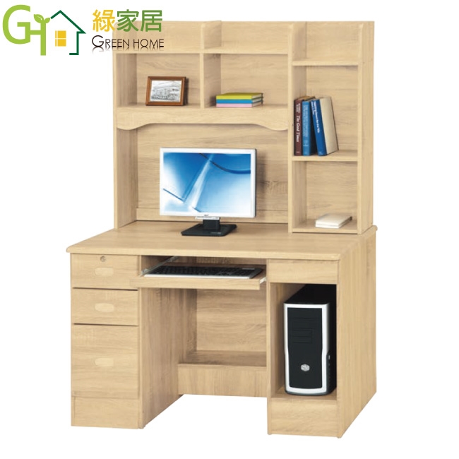 【綠家居】拓海4尺鍵盤三抽書桌組合