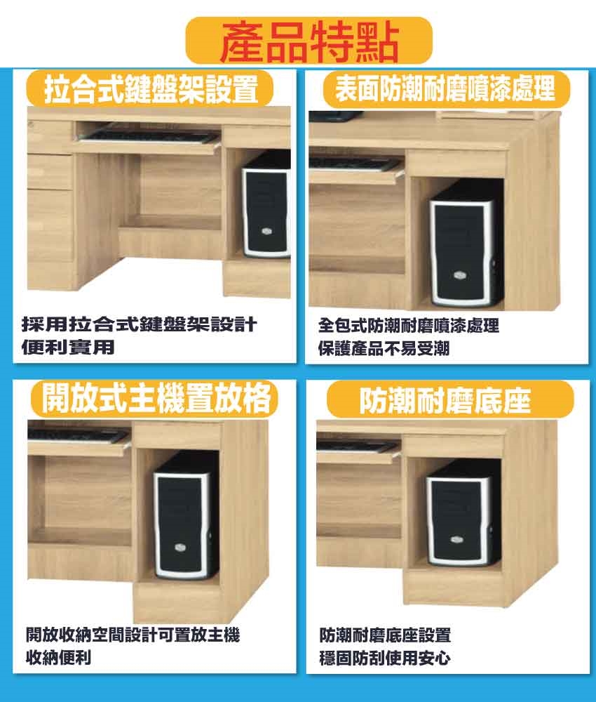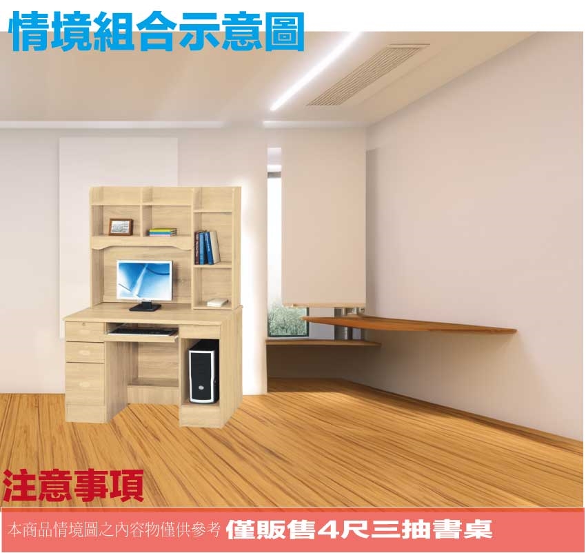 ◆產品名稱:【綠家居】拓海4尺鍵盤三抽書桌組合
