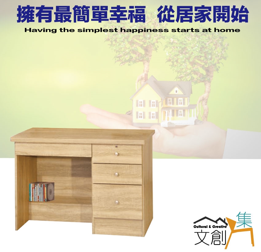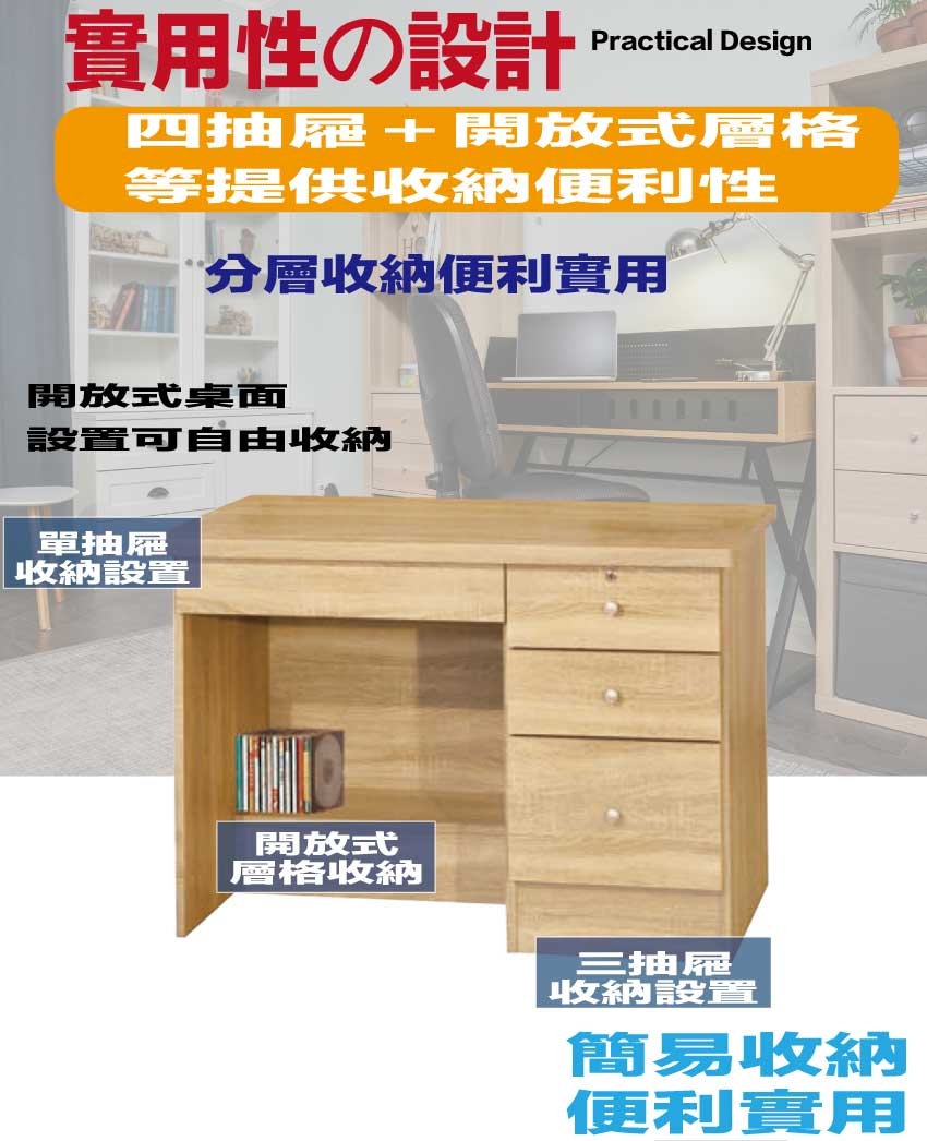 【綠家居】喜鵲3尺四抽書桌 橡木紋色系+安心材質製造,使用放心+搭配居家更便利,採用防蛀木心板+防潮耐磨底座+五金滑軌結構等安心材質製造 ,外層採用防潮耐磨噴漆處理搭配採用四抽屜+開放層格等收納空間設計,全由專人配送到家,專業安心服務,替你省下更多時間!