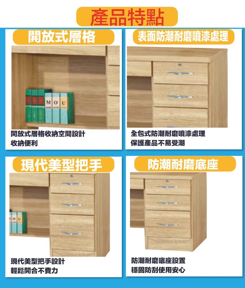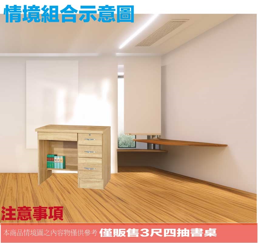 ◆產品名稱:【綠家居】金雀3尺四抽書桌