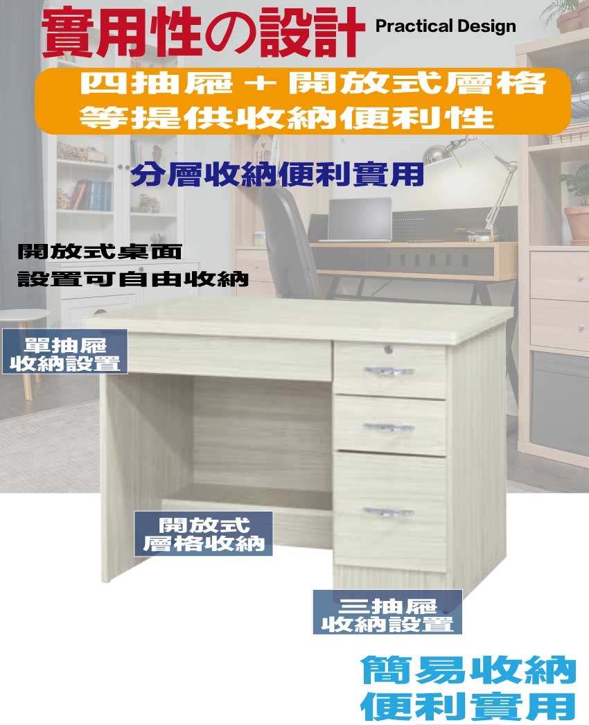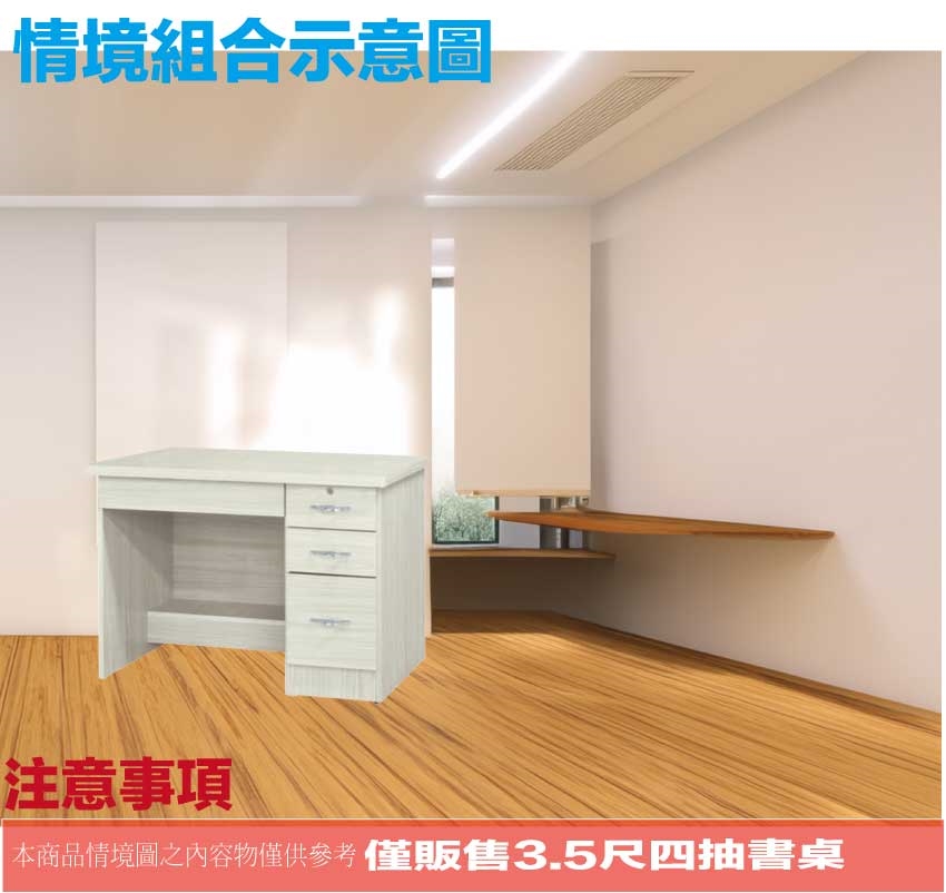 ◆產品名稱:【綠家居】美滿3.5尺四抽書桌