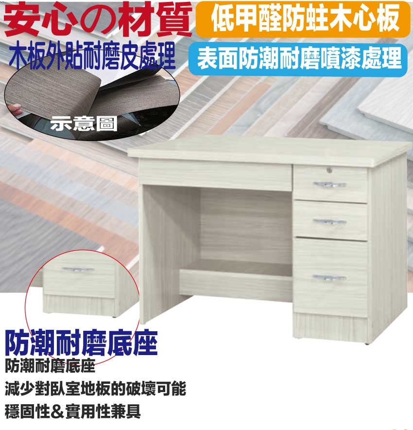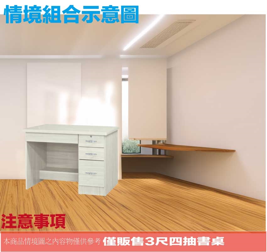 ◆產品名稱:【綠家居】美滿3尺四抽書桌
