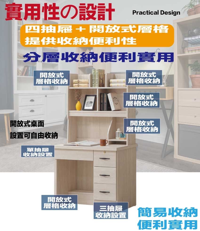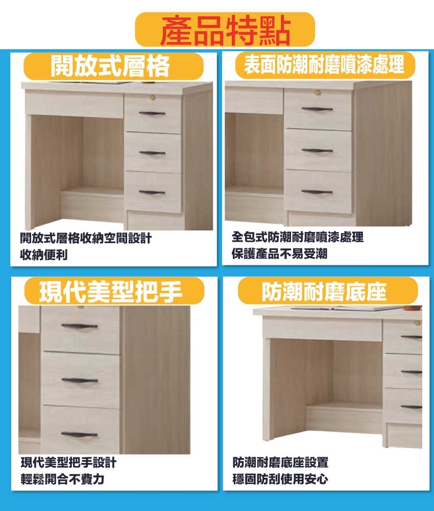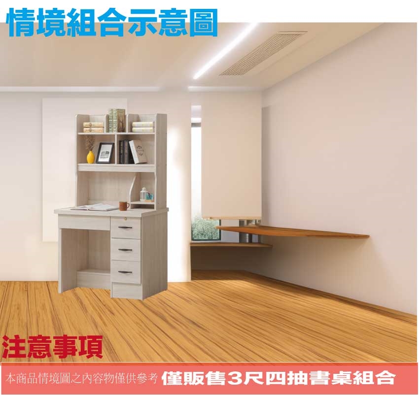 ◆產品名稱:【綠家居】海星3尺四抽書桌組合
