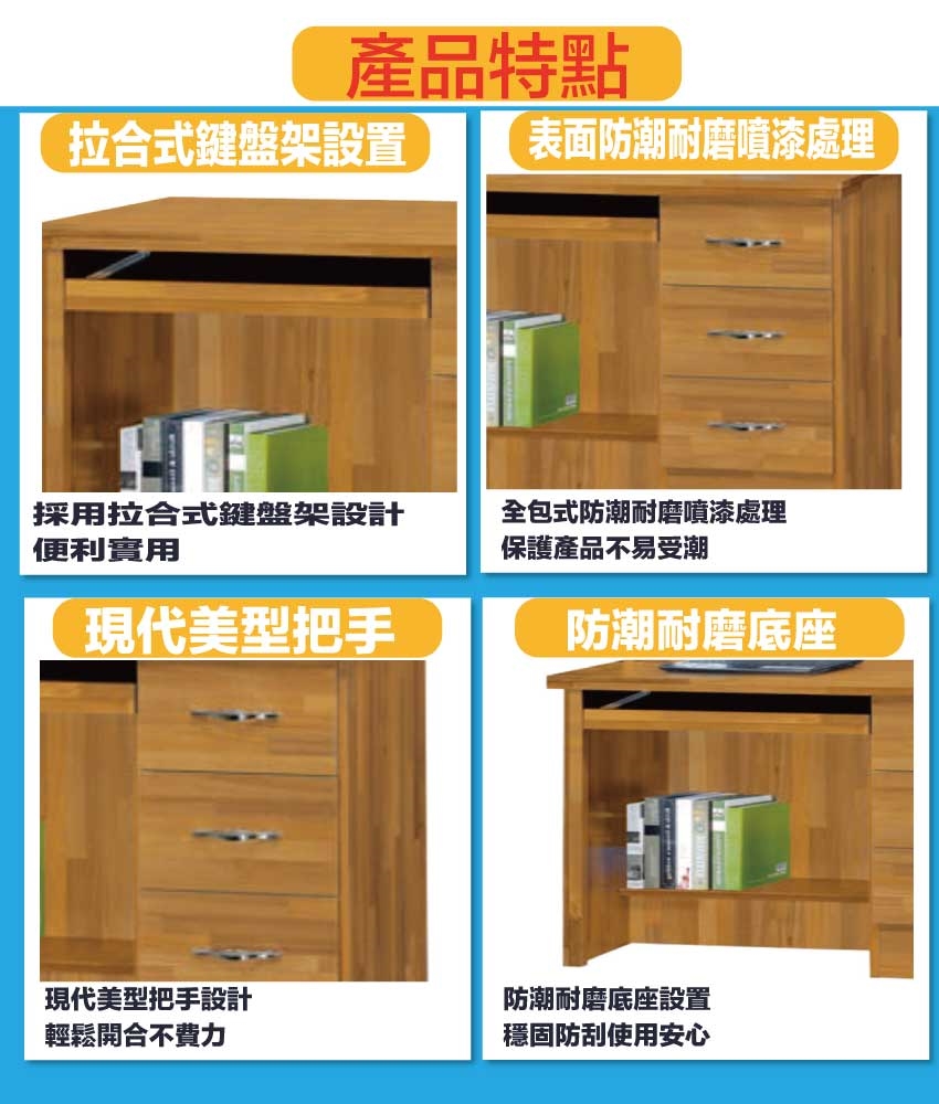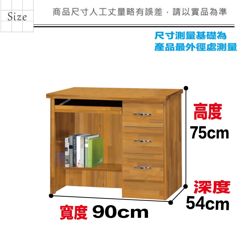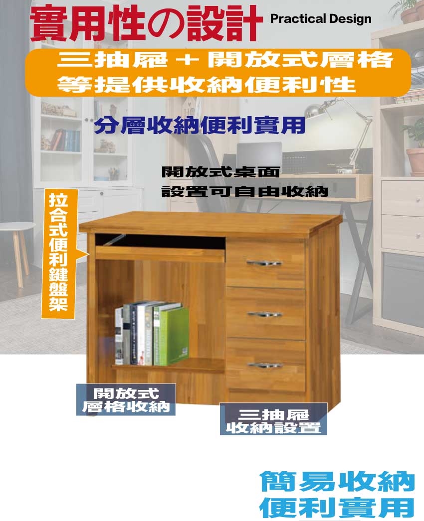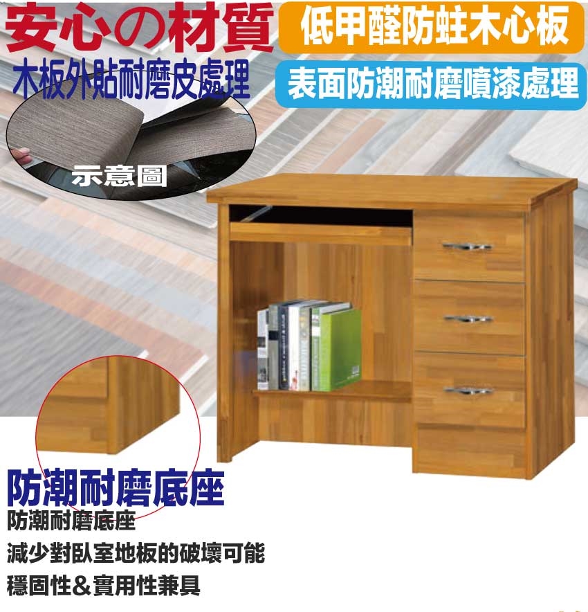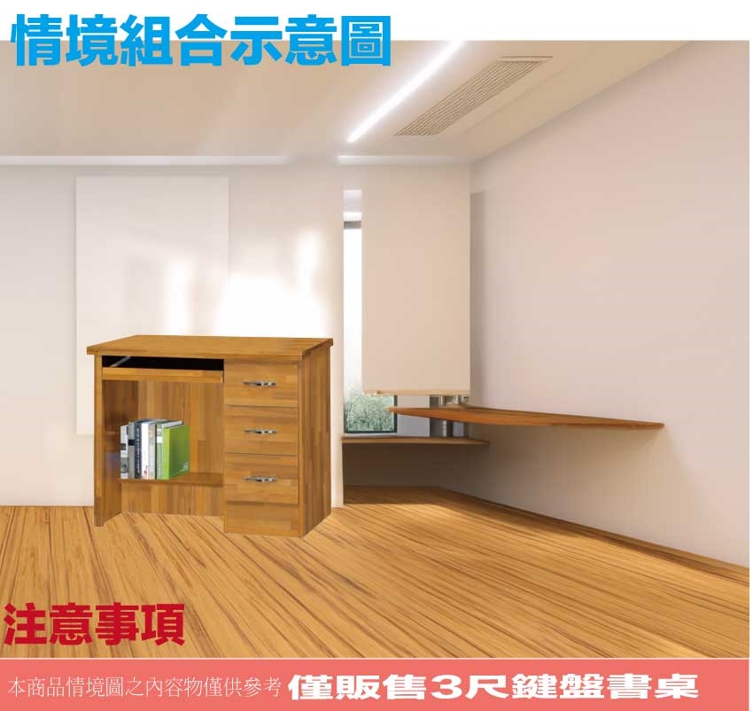 ◆產品名稱:【綠家居】心語3尺鍵盤三抽書桌