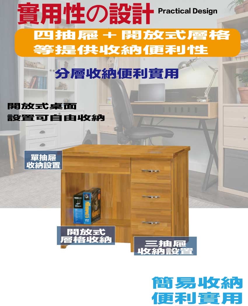 ◆產品名稱:【綠家居】心語3尺四抽書桌