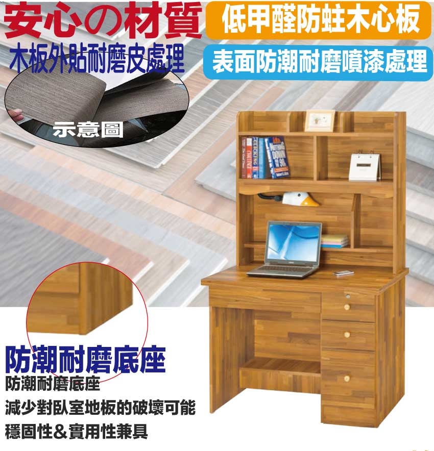 【綠家居】心語3.5尺四抽書桌組合(附可調護眼燈) 淺柚木紋色系+安心材質製造,使用放心+搭配居家更便利,採用防蛀木心板+防潮耐磨底座+五金滑軌結構等安心材質製造 ,外層採用防潮耐磨噴漆處理搭配採用可調式護眼燈架+四抽屜+開放層格等收納空間設計,全由專人配送到家,專業安心服務,替你省下更多時間!