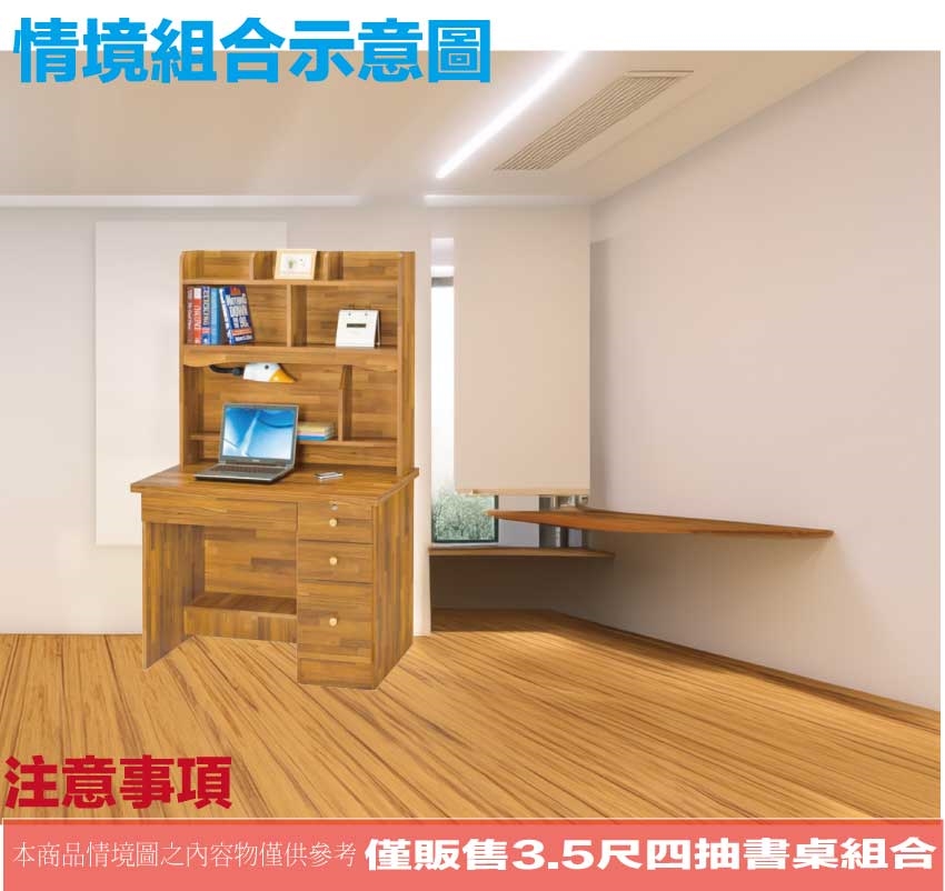 ◆產品名稱:【綠家居】心語3.5尺四抽書桌組合(附可調護眼燈)