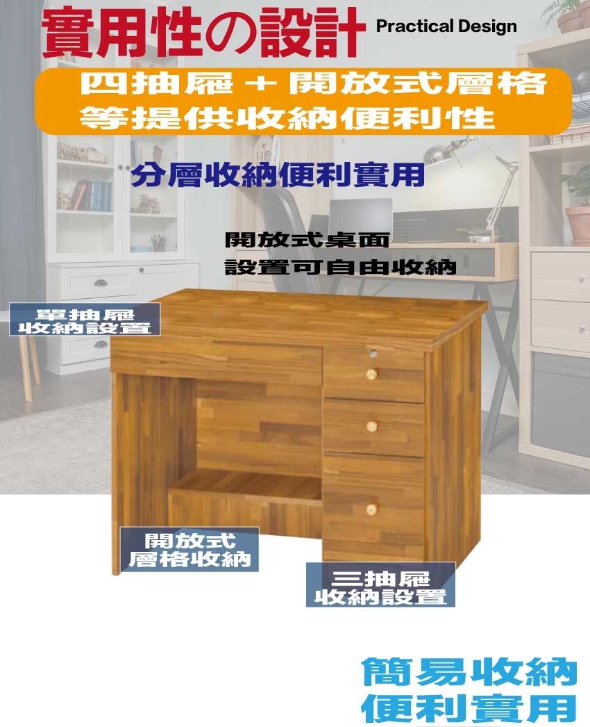 ◆產品名稱:【綠家居】心語3.5尺四抽書桌
