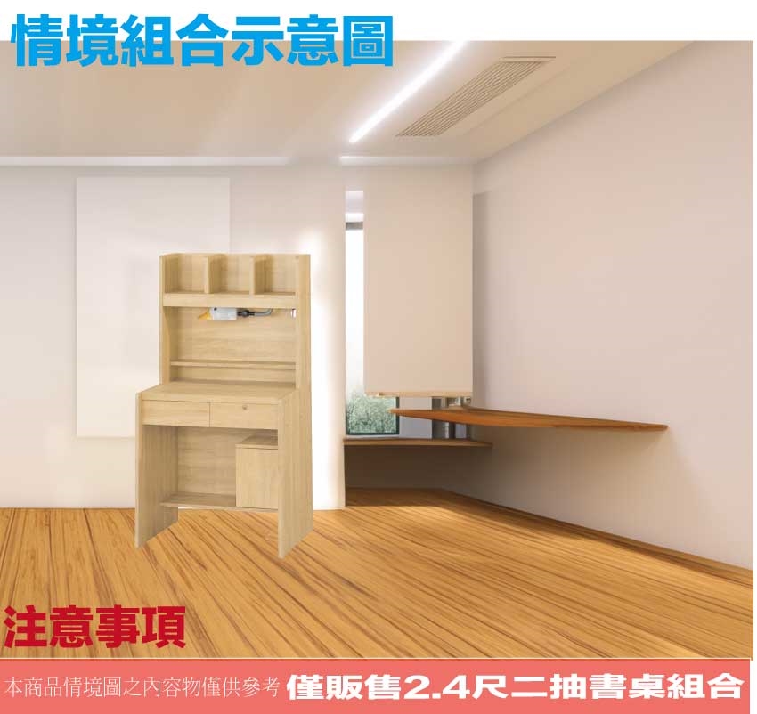 ◆產品名稱:【綠家居】心語2.4尺二抽書桌組合(三色可選+附可調護眼燈)