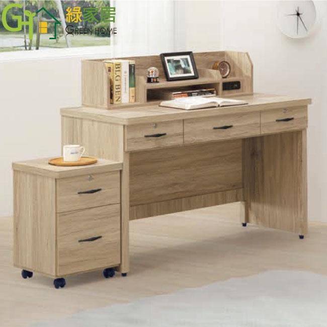 【綠家居】伯朗4.1尺多功能書桌組合(附USB插座+活動櫃+上座書架) 橡木紋色系+安心材質製造,使用放心+搭配居家更便利,採用防蛀木心板+防潮耐磨底座+便利滑輪設置+五金滑軌結構等安心材質製造 ,外層採用防潮耐磨噴漆處理搭配採用桌上架附USB插座+五抽屜+開放層格等收納空間設計,全由專人配送到家,專業安心服務,替你省下更多時間!