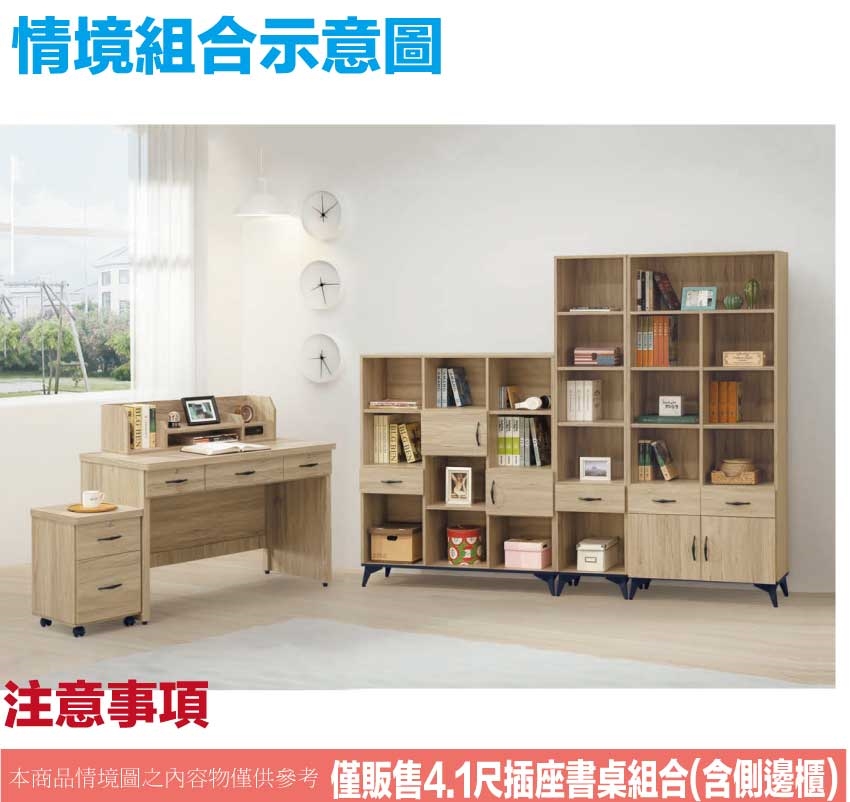 ◆產品名稱:【綠家居】伯朗4.1尺多功能書桌組合(附USB插座+活動櫃+上座書架)