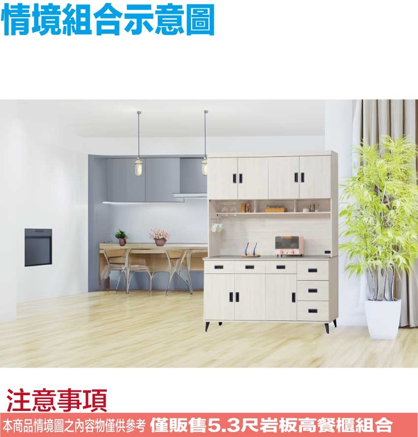 ◆產品名稱:【綠家居】多曼5.3尺岩板高餐櫃組合