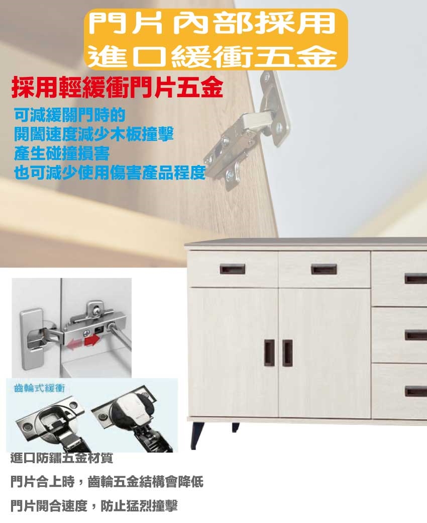 材質:防蛀木心板+烤漆五金腳座+五金滑軌結構+防夾手緩衝五金+12mm高硬度岩板桌面板