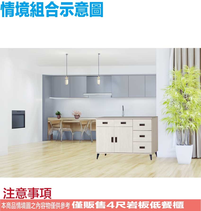 ◆產品名稱:【綠家居】多曼4尺岩板低餐櫃