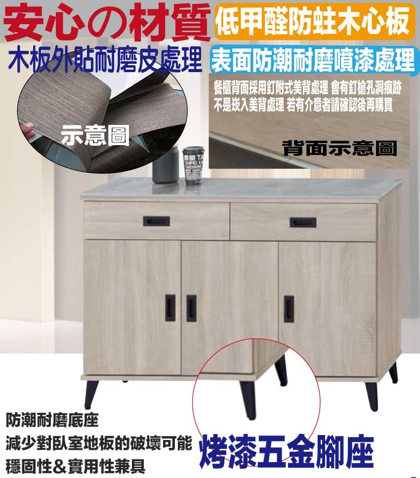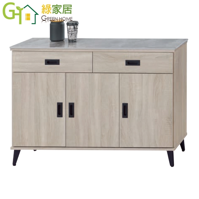 【綠家居】曼麗4尺岩板低餐櫃 淺灰橡木紋色系+現代簡約風格+安心材質製造,使用放心+搭配居家更便利,整體採用防蛀木心板+烤漆五金腳座+五金滑軌結構+防夾手緩衝五金+12mm高硬度岩板桌面板等材質搭配外層採用優莉坦耐磨全包式噴漆處理 ,採用開門櫃+三抽屜+內&外開放層格等收納空間設計,全由專人配送到家,專業安心服務,替你省下更多時間!