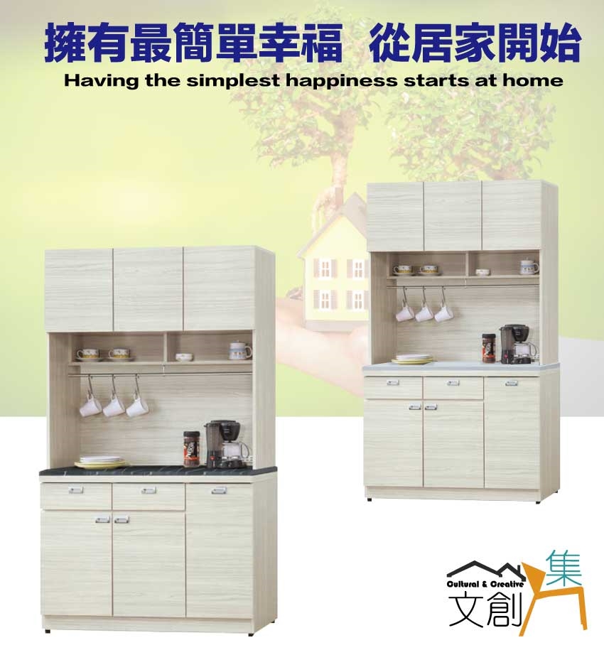 【綠家居】吉曼3.9尺岩板&石面高餐櫃組合(二色可選)