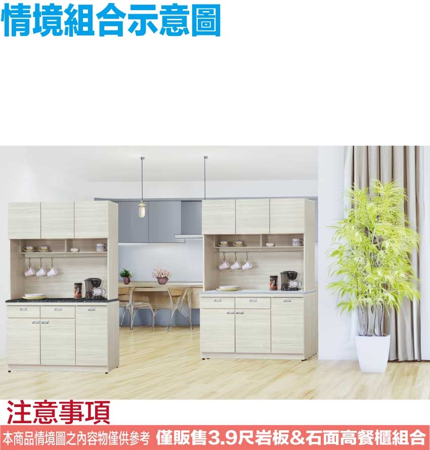 ◆產品名稱:【綠家居】吉曼3.9尺岩板&石面高餐櫃組合(二色可選)