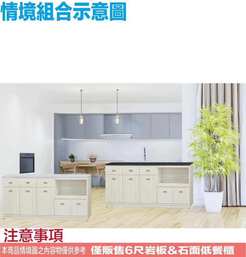 ◆產品名稱:【綠家居】吉曼6尺岩板&石面拉盤低餐櫃(二色可選)