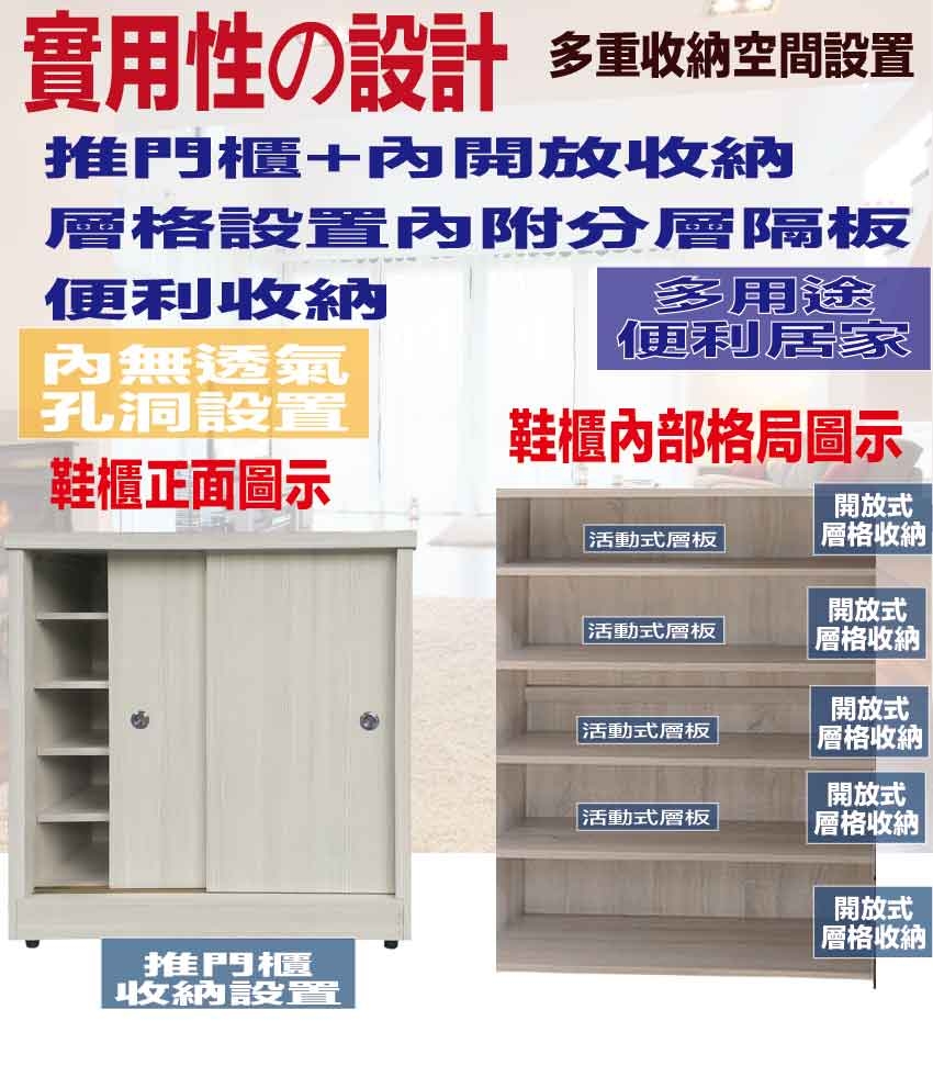 - 推門櫃+內開放式層格