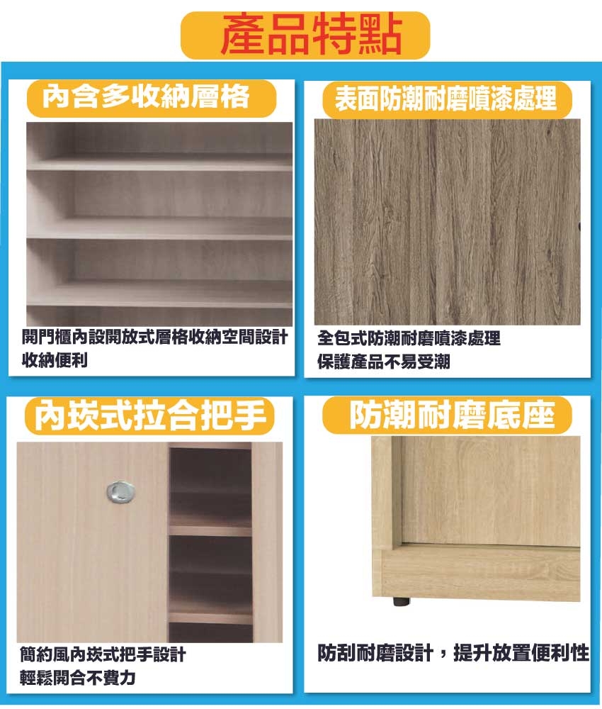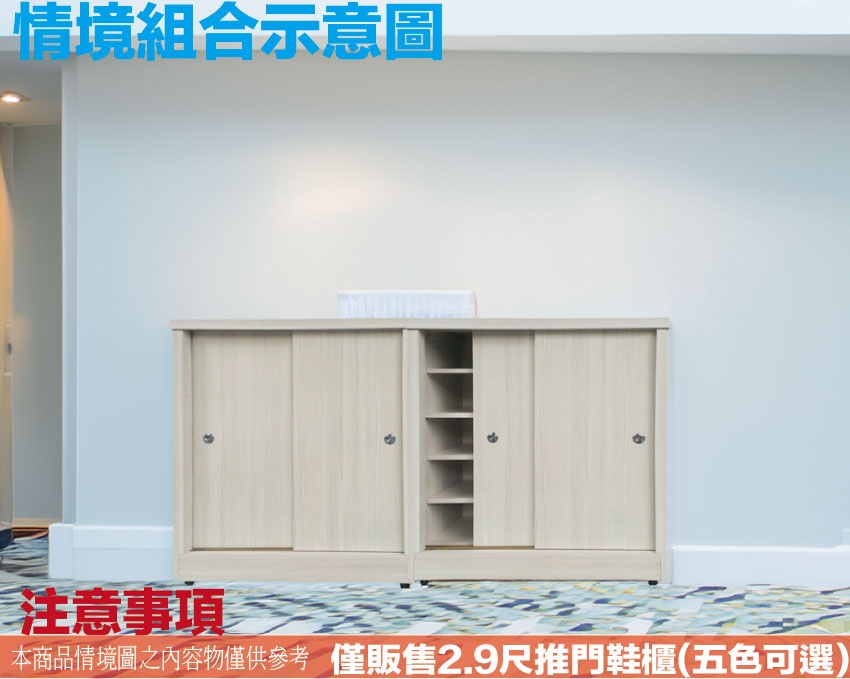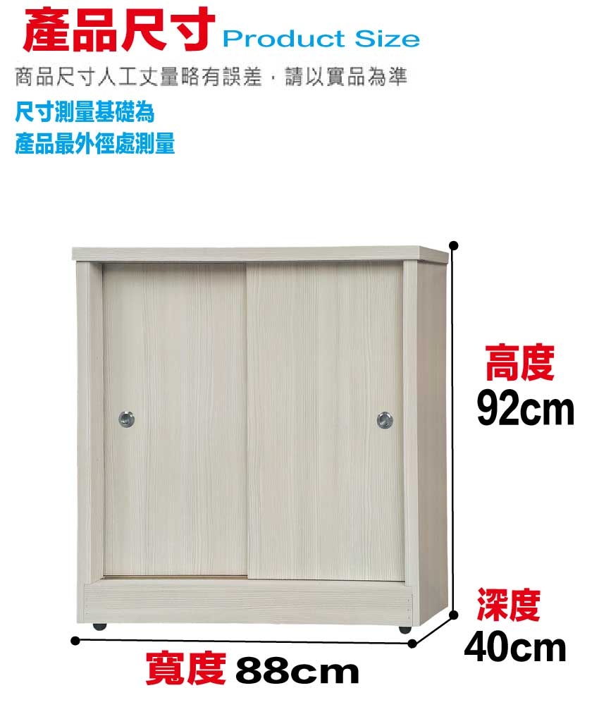 多坦2.9尺推門低鞋櫃(五色可選) 尺寸:(寬)88x(深)40x(高)92/公分 ◆材質: 材質:防蛀木心板+防潮耐磨底座 - ◎注意事項:
