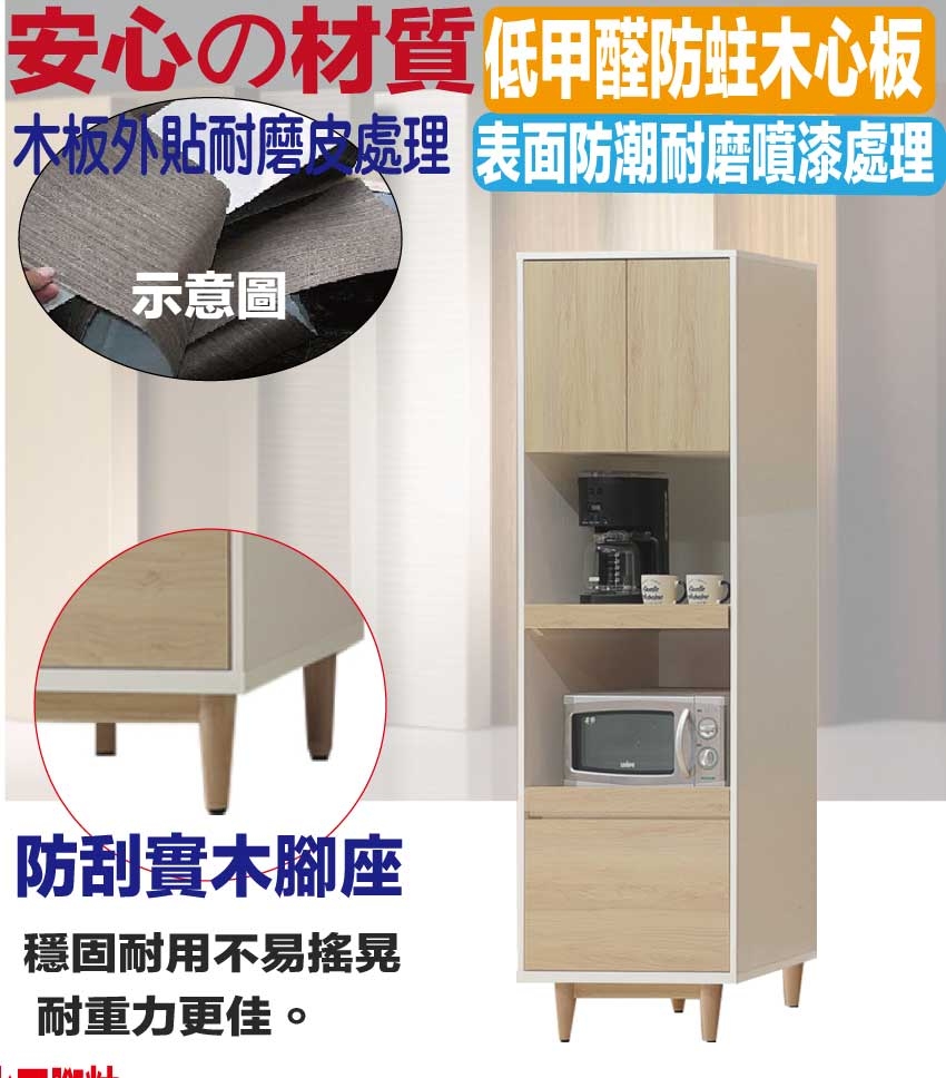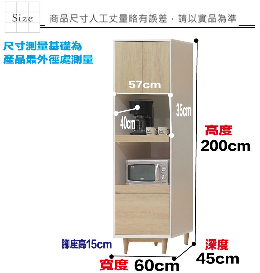 愛楓2尺開門拉盤高電器櫃/餐櫃 尺寸:(寬)60x(深)45x(高)200/公分 ◆材質: 材質:防蛀木心板+防刮實木腳座(底部為防刮腳粒 - ◎注意事項: